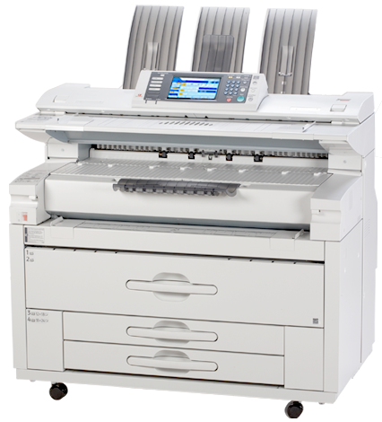 We now sell and service state-of-the-art Wide Format Printers such as the Ricoh Aficio MP W5100en. With this you can add color scanning to your workflow. (Shown Below)